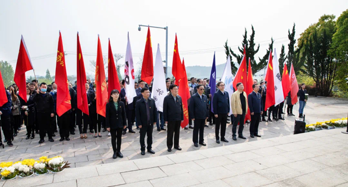 为缅怀革命先烈,传承红色基因,进一步推动党史学习教育深入人心,4月13日上午,红豆钱包 党委在江宁横山烈士纪念碑开展凭吊活动。集团党委班子成员、二级公司班子成员、支部书记、党务工作者、党员代表、团员代表、工会代表及总部党员代表共179人参加。上午9时,活动正式开始,全体党员整齐列队革命烈士纪念碑前。两名党员代表将集团党委敬献的花篮摆放至纪念碑前,集团党委书记、董事长王正喜代表全体党员郑重整理挽联。全体党员向为民族解放而英勇献身的革命烈士三鞠躬,沉痛默哀。在庄严肃穆的纪念碑前,集团党委副书记姚蓓带领在场党